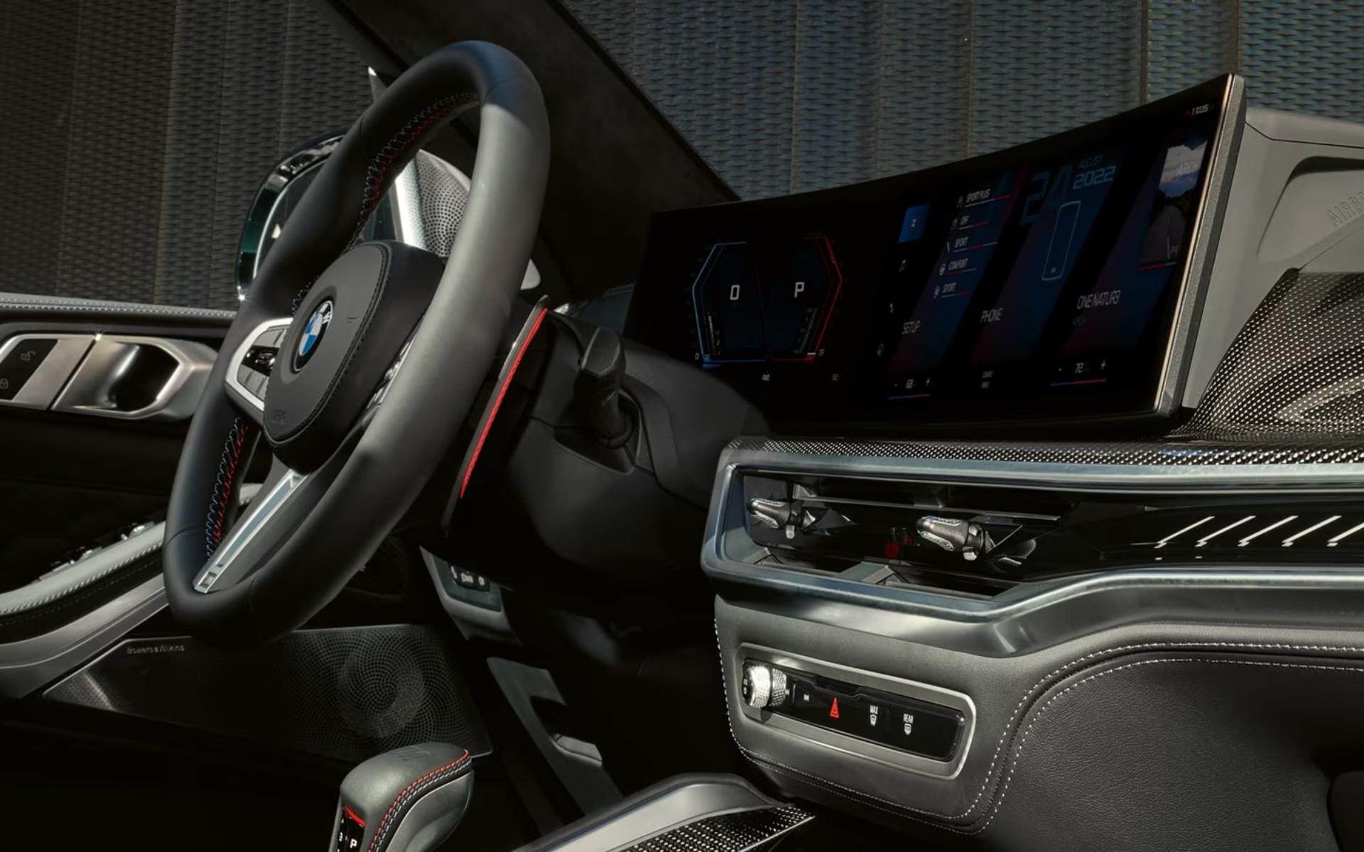 Step inside the 2024 BMW X5 M, and you're immediately immersed in a world of cutting-edge technology and unparalleled connectivity. Every facet of the infotainment system has been meticulously designed for an unforgettable experience. The ultra-modern iDrive 8 software takes centre stage, showcased on a striking curved dashboard display that seamlessly integrates with the vehicle's interior aesthetic. The system offers intuitive control through hand gestures, voice commands, and a convenient rotary controller on the centre console, ensuring that drivers have seamless access to their driving experience.