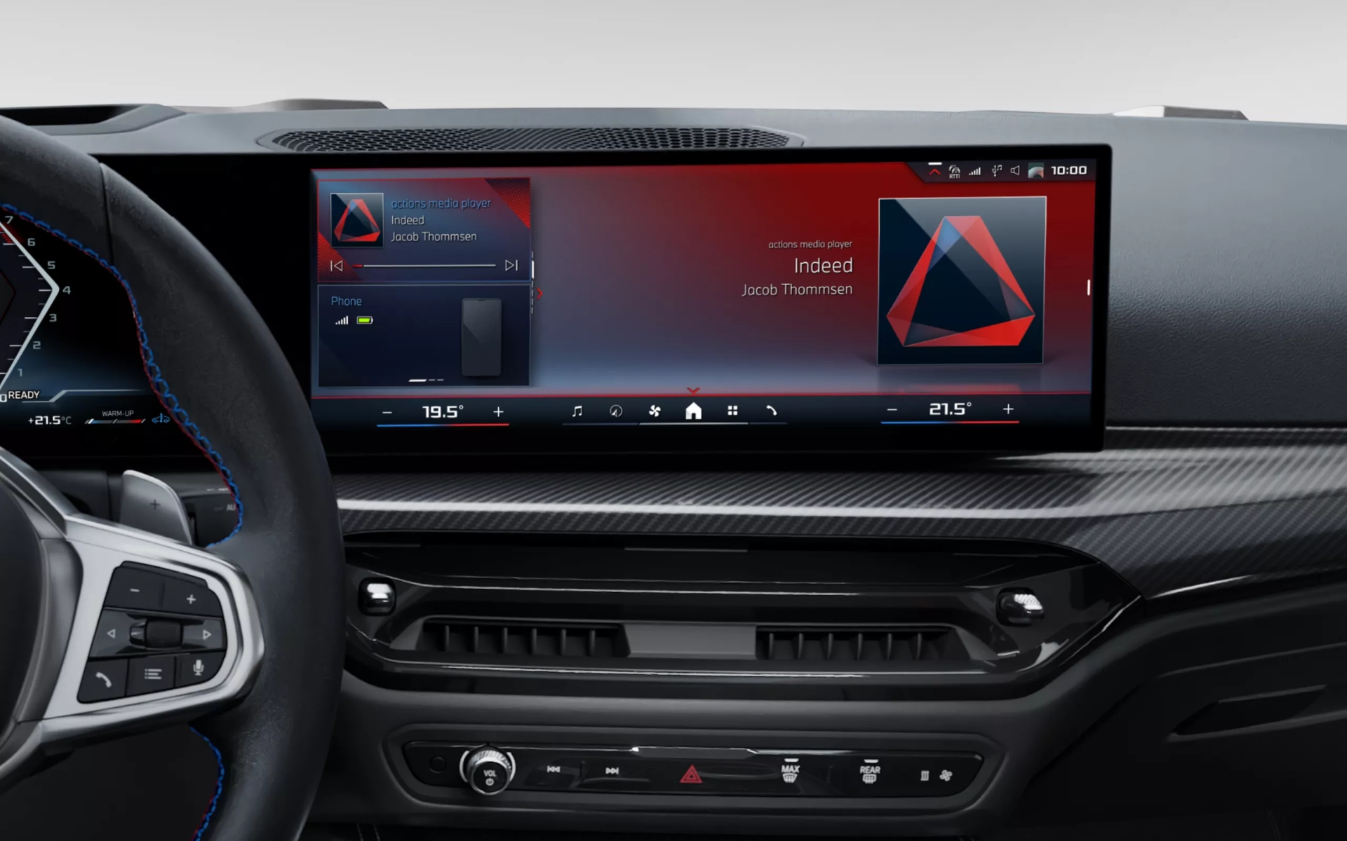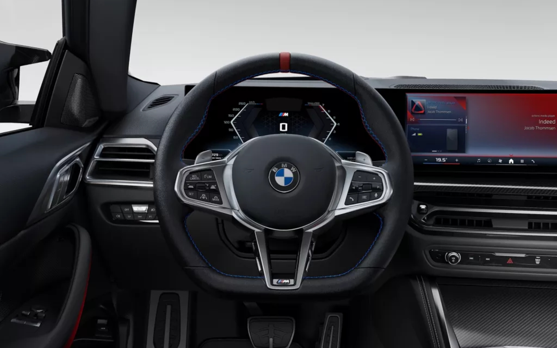 The front seats offer ample headroom (965 mm) and legroom (1,061 mm) for even the tallest drivers. The driver's seat boasts a sporty red 12 o'clock position mark and the M logo, subtle reminders of the power beneath the hood.