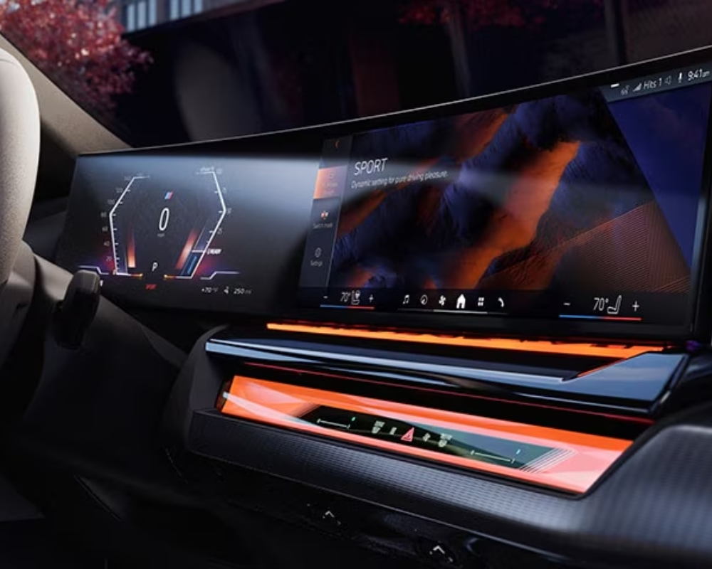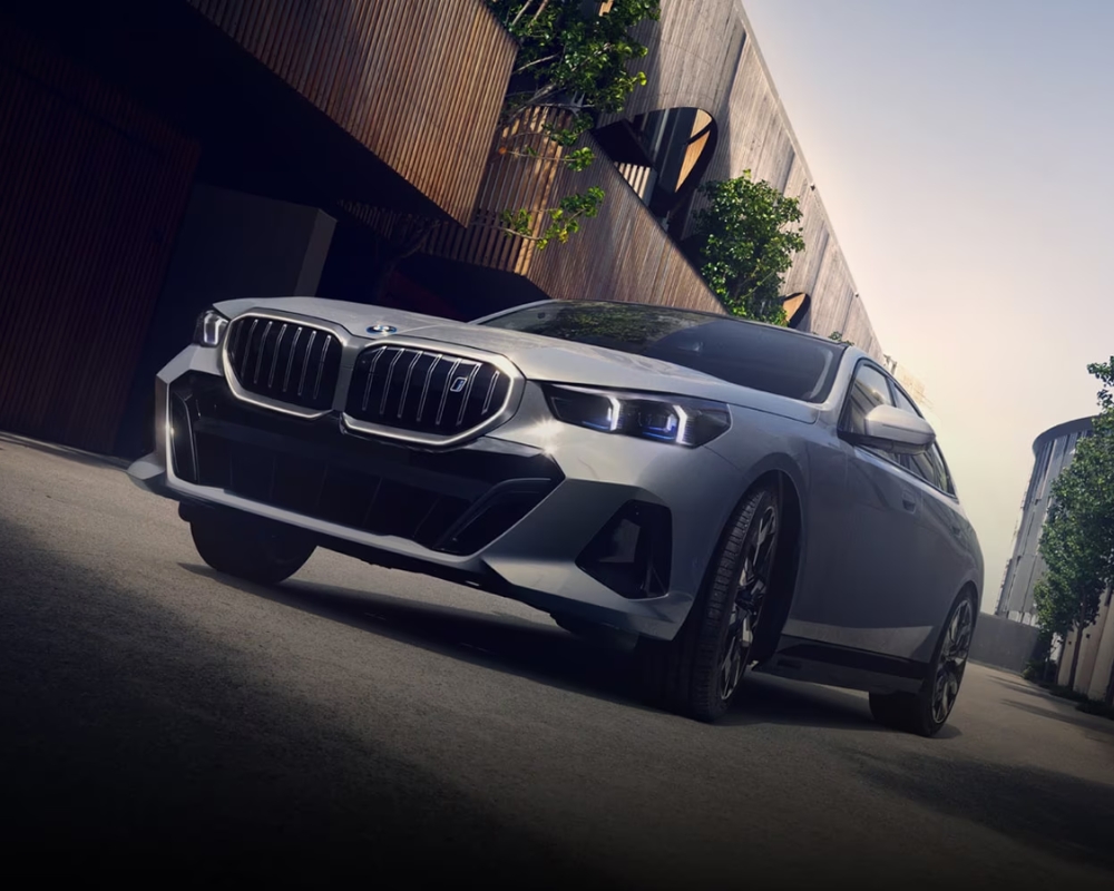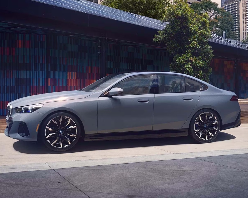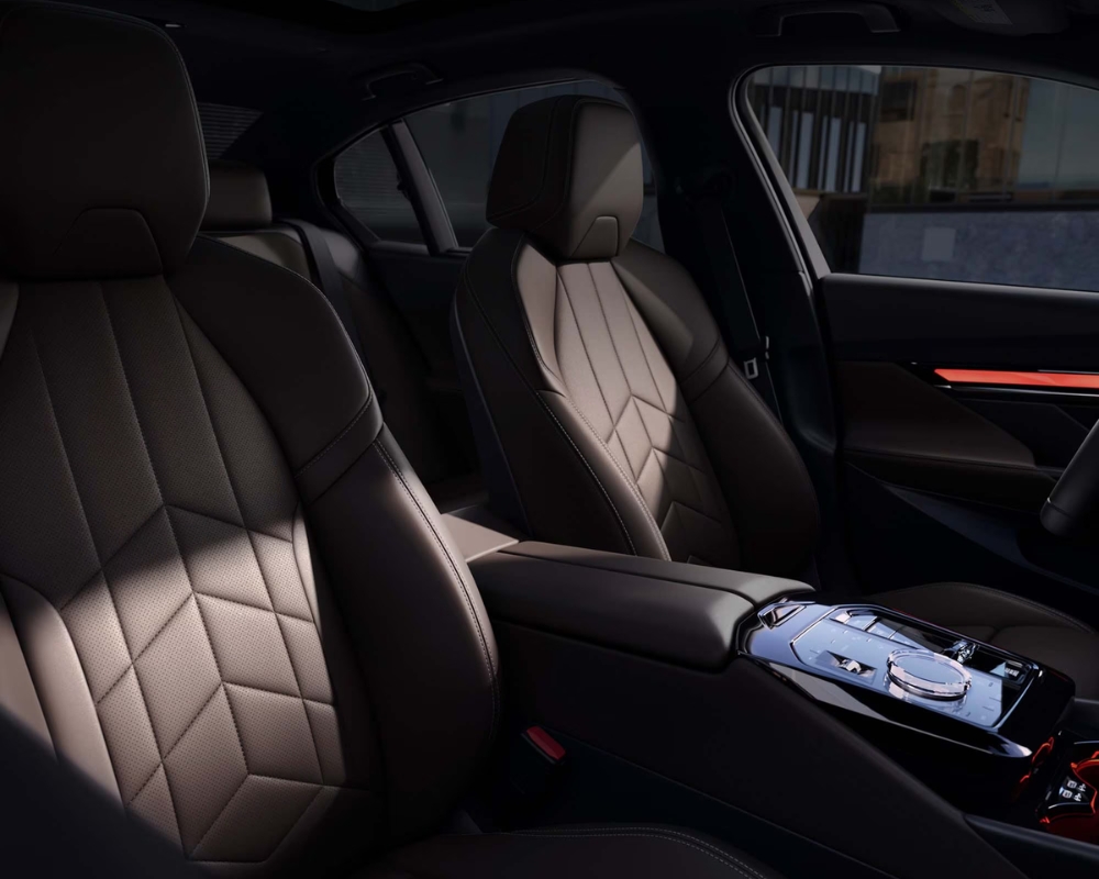 The BMW i5’s exterior design captures attention with its modern yet unmistakably BMW styling. The kidney grille now features illuminated accents, adding a futuristic touch. Aerodynamic improvements, including streamlined body lines and active air vents, contribute to its efficiency. LED headlights and taillights come standard, while optional 19 and 20-inch alloy wheels and a glass panoramic roof enhance its premium aesthetic.